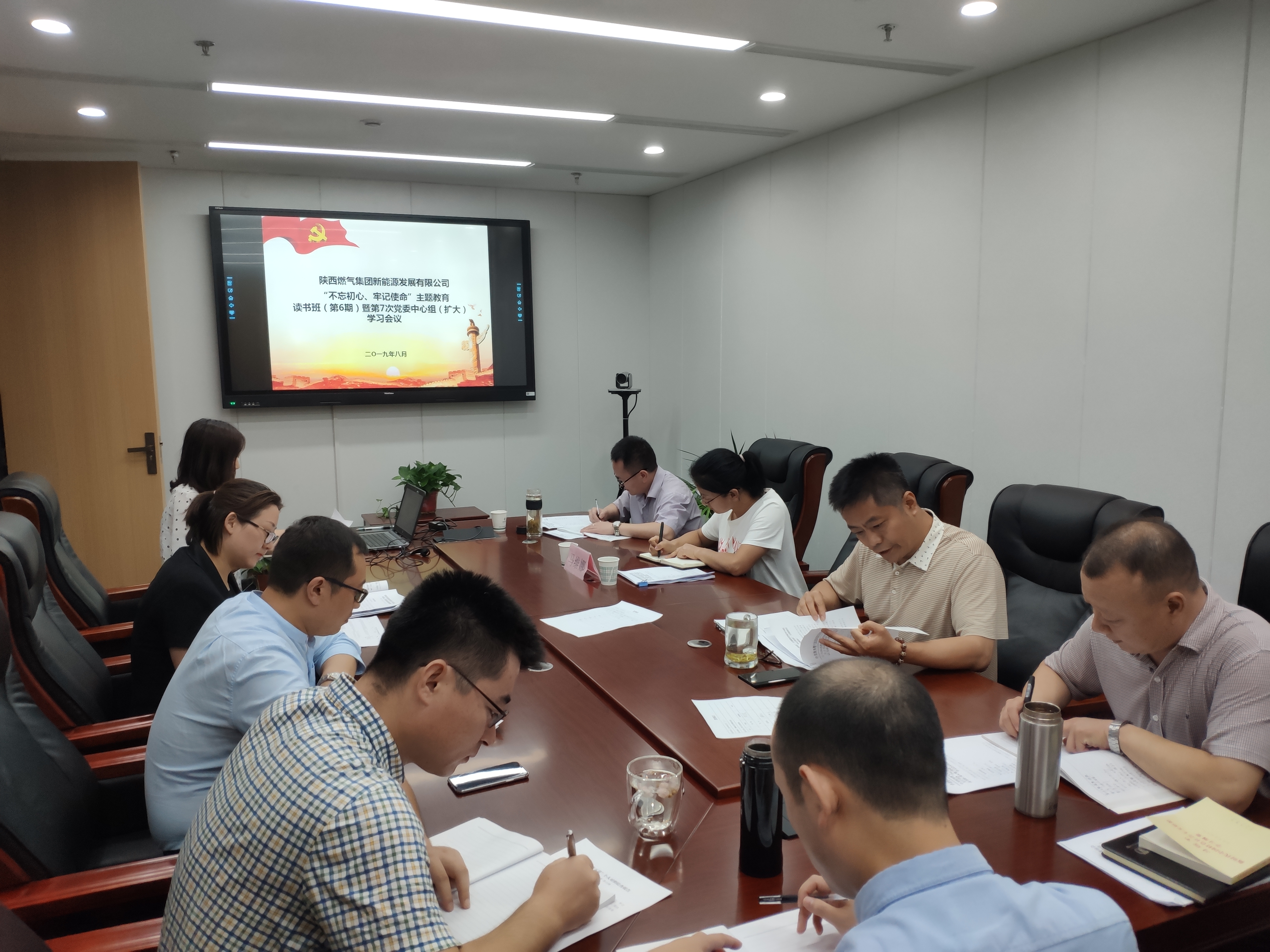 8月7日下午,新能源公司黨委舉辦“不忘初心、牢記使命”主題教育第6期讀書班暨2019年第7次黨委中心組(擴大)學習會議。公司黨委書記、董事長賀強主持會議。集團公司“不忘初心、牢記使命”主題教育督導組成員馬維娜到會指導。
