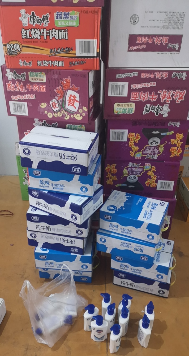 節日期間,體溫槍、消毒液、酒精、西航花園項目員工儲備糧第一時間配備送達到位。